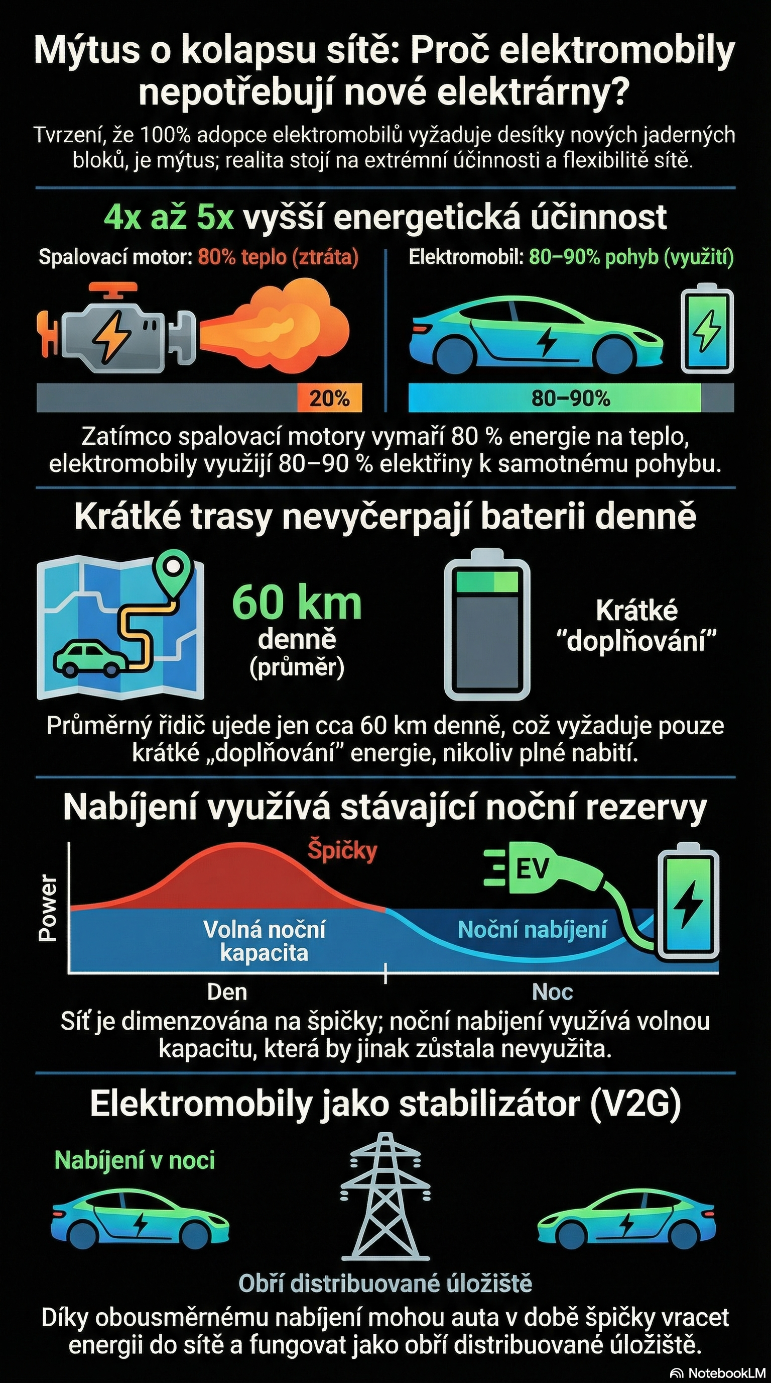 Elektromobily a elektrická síť: hrozí kolaps, nebo jde o mýtus? Reálná data, účinnost EV a chování řidičů v praxi. Jak funguje noční nabíjení a kolik energie skutečně potřebujeme?